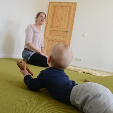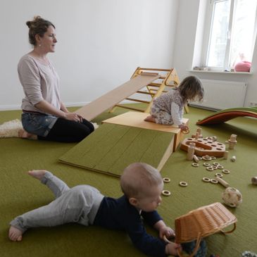 An original Pikler Spielgeräten, in einer liebevoll gestalteten Umgebung, kann Ihr Baby seine Selbstwirksamkeit erfahren.